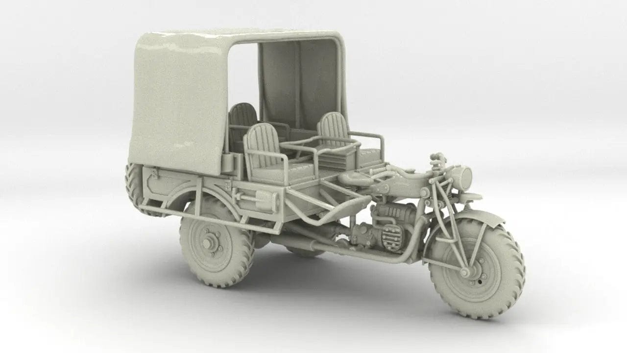 This 1/6 scale Belgium Tricycle FN Tricar T3 (4 seat) Set offers a unique opportunity to build a detailed replica of this interesting pre-WWII Belgian military motorcycle. The FN Tricar was a Belgian military motorcycle produced right before World War II. This set allows you to recreate this vehicle, which in its real-life form, was armed with either the FN-Browning 13.2 mm machine gun or a Hotchkiss 13.2 mm machine gun.